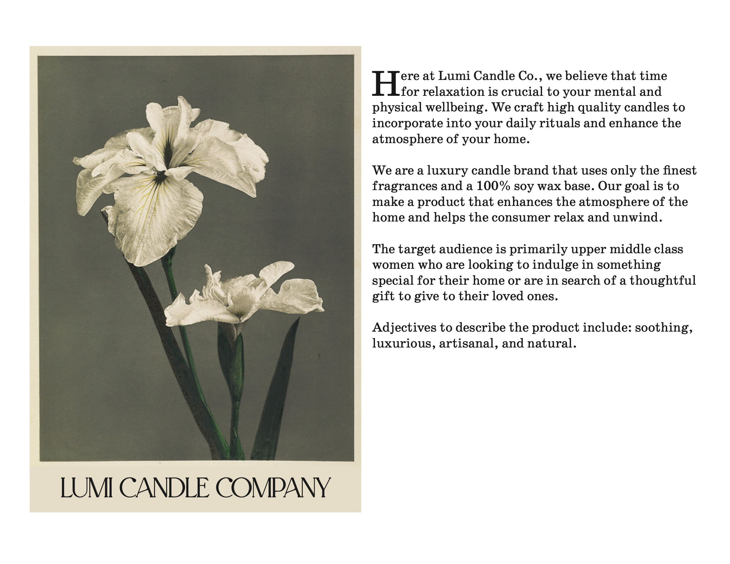 For this company I aimed to create a look that felt soothing, luxurious, artisanal, and natural.